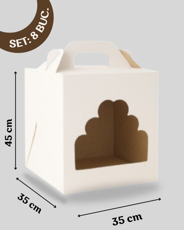 Cutie pentru tort alb/kraft 35,5×35,5×45 cm cu fereastra, set 8buc. Artispack