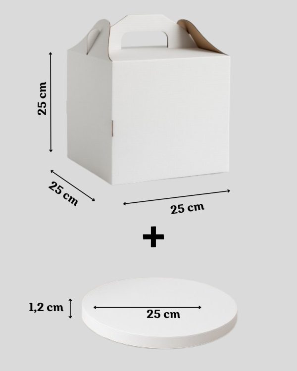 Cutie pentru tort rigida 25x25x25 cm cu Disc gros tort 2 fete ALB/KRAFT Ø 25 cm 3 mm, set 10+10buc. Artispack