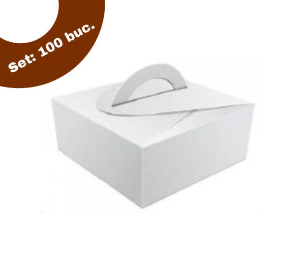 Cutie tort alba cu maner 20x20x13 cm, set 100 buc Turkoglu